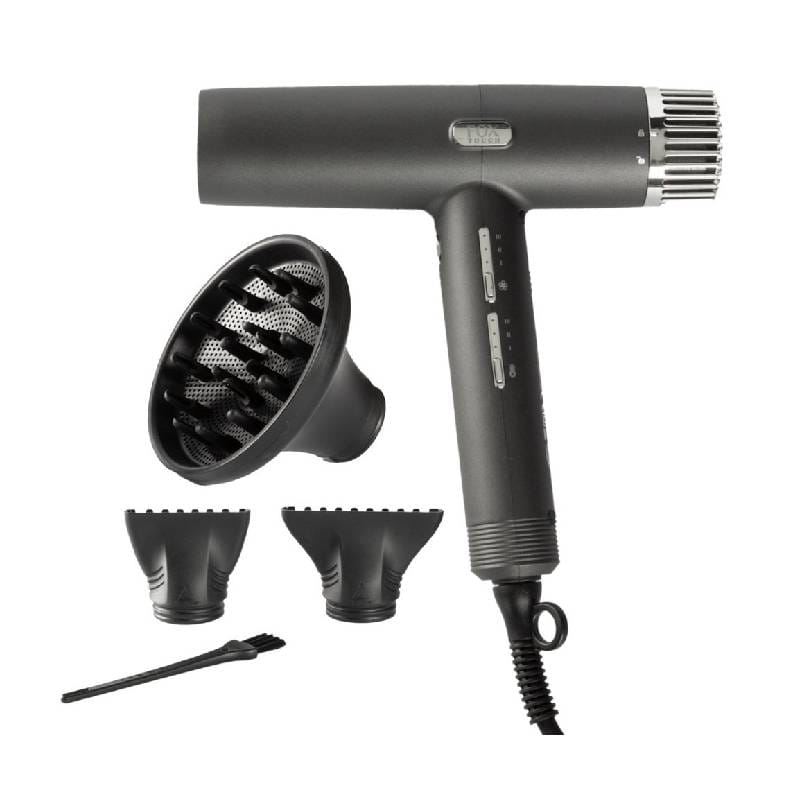 Wyposażona w innowacyjny silnik bezszczotkowy o prędkości 110 000 obr./min, suszarka FOX Touch gwarantuje ekspresowe suszenie – nawet o 50% szybsze, niż tradycyjne modele. Dzięki funkcji jonizacji eliminuje elektryzowanie się włosów, pozostawiając je gładkie, lśniące i pełne życia.